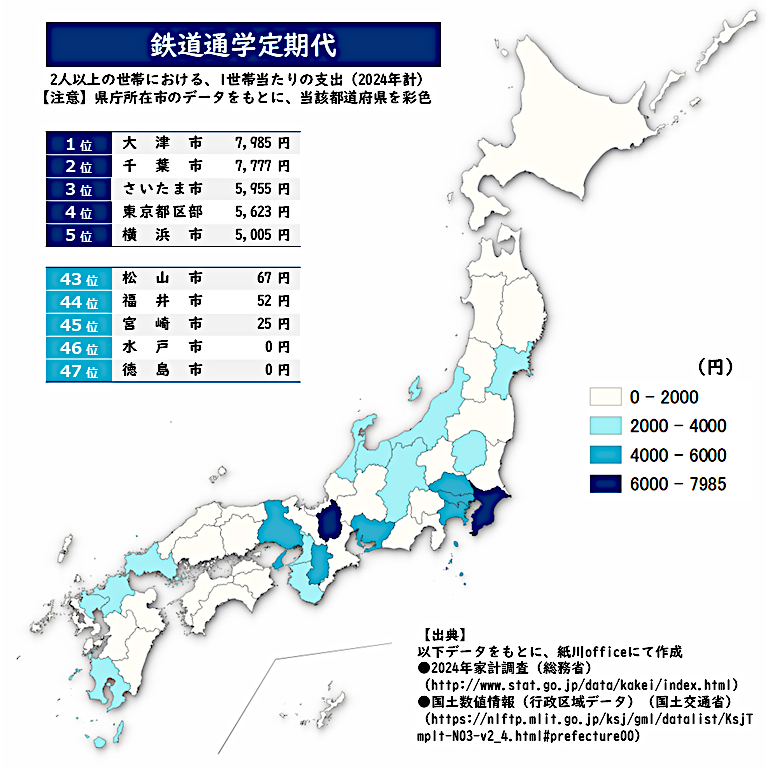 ‘ 正解は・・・ <鉄道通学定期代> 大津市がトップ! トップ5で関西唯一のランクイン。 関東も濃いですね。 今日もたくさんのためになるリプをありがとうございます。 よい夜を! ★ファミマビジョンで出題中★ gate-one.co.jp/news/info/8326/ #鉄道 #通学 #定期 #地理 #GIS #クイズ #統計 pic.x.com/G1nvHPQWDa