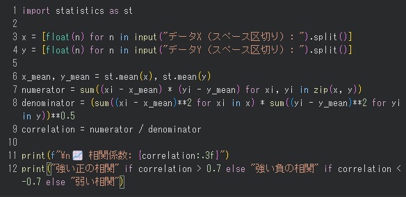 データサイエンス向けPythonプログラム集 【14行】2つのデータの関係を分析📈 相関係数を計算するプログラム 勉強時間と成績の関係も調べられる! #Python #データ分析 #統計 #相関係数 pic.x.com/dqwhV56HZ0