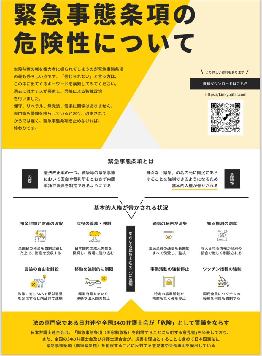 右派勢力が強く加憲を主張する #緊急事態条項 は、単に国民の私権制限に留まらず、日本に独裁政権の誕生を可能にする内容なのに、マスコミはこの事を世論に解説しないから意味不明です #サタデーステーション は使えない #憲法変えるな憲法守れ #憲法改悪断固反対 #サンジャポ #日曜討論 もそう