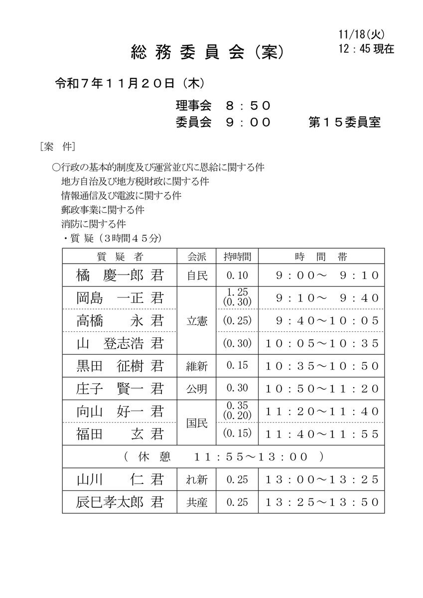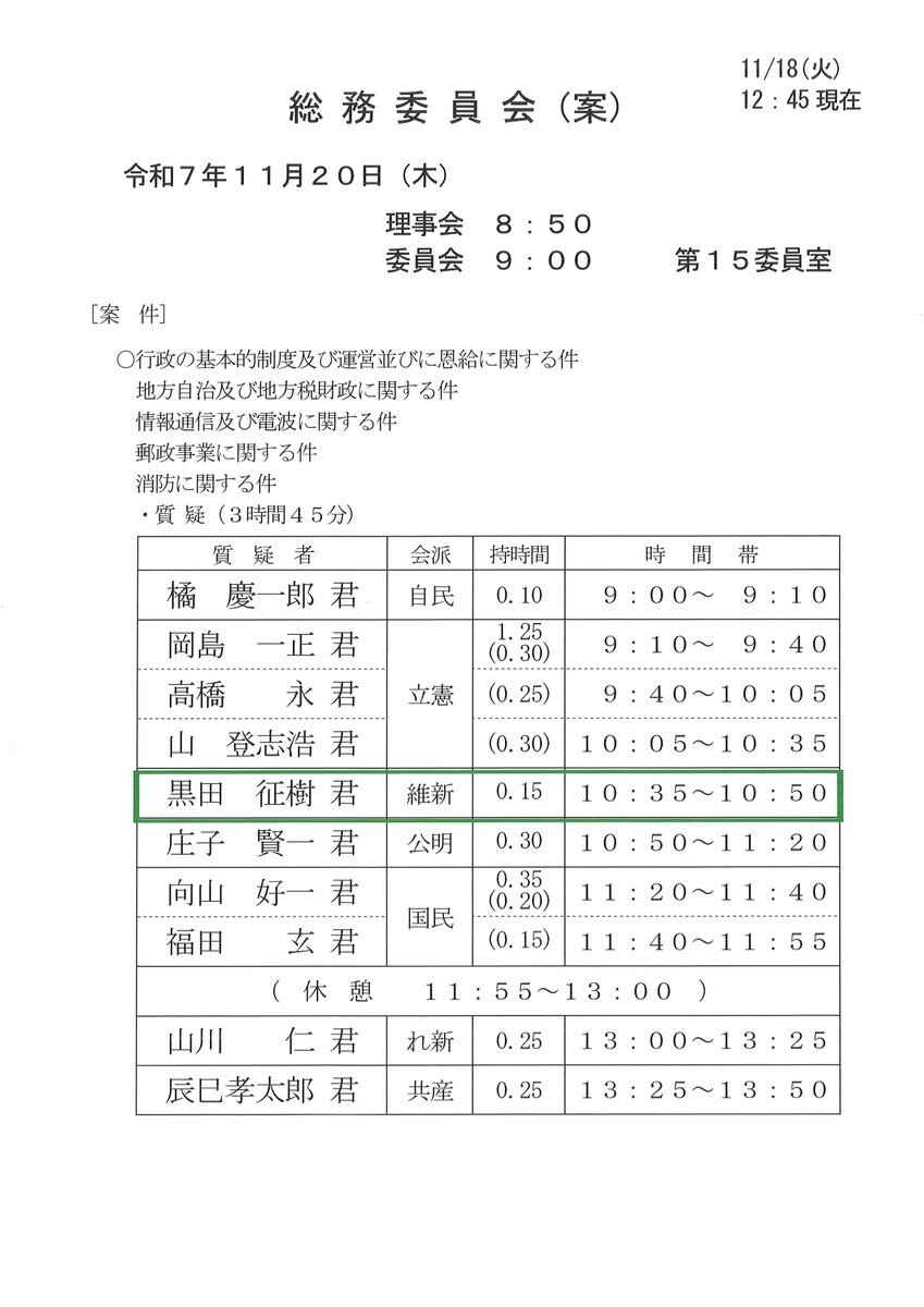 来週11/25火曜日、ついに初質疑となります! 総務委員会にて、足立さんと順番に立たせていただきます。 全力投球でがんばります! ご注目ください! #国民民主党 x.com/adachiyasushi/…