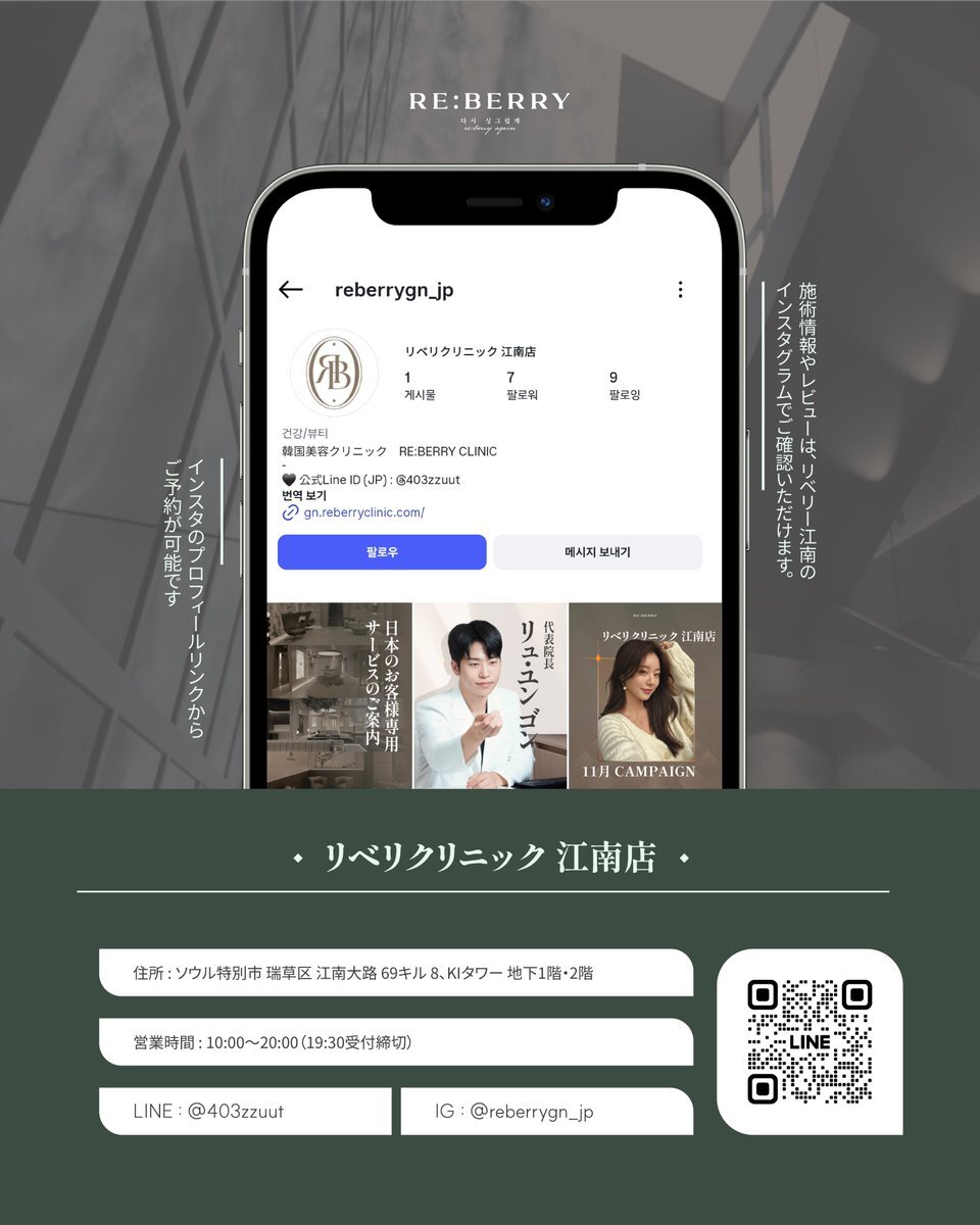 📍RE: BERRY 江南 あなたの美しさと自信を、ここ江南で。 — REBERRY GANGNAM 📱 @reberrygn_jp 🕙毎日10:00-20:00 (受付の締め切り19:30) #リベリクリニック江南店 #リベリクリニック #江南美容皮膚科 #韓国美容 #肌再生 #韓国旅行 #美容医療 #韓国美容好きな人と繋がりたい pic.x.com/5slRyLVwrC