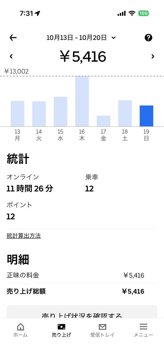 ◎2025.10.19 🐸  32件 31,816円 🚀🥫 11件 11,311円 合計 43,127円 休憩合計4h 今週、色々試して稼働していました。 まだ、反省点がありますので、 修正しながら稼働してみようと思います。 お疲れ様でした👋💤 #ツナリザルト #軽貨物 #Uber pic.x.com/MFLrTMUvFl