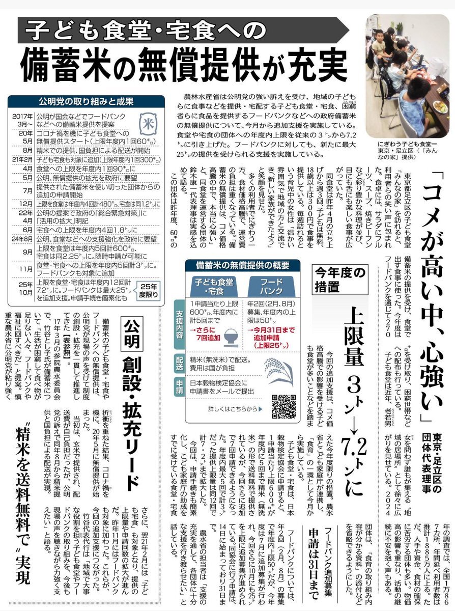 #子ども食堂・#宅食 への #備蓄米 の無償提供が充実 #農林水産省#公明党 の強い訴えを受け、地域の #子ども食堂#宅食#フードバンク などへの #政府備蓄米の無償提供 pic.x.com/cUCZZKCs3F