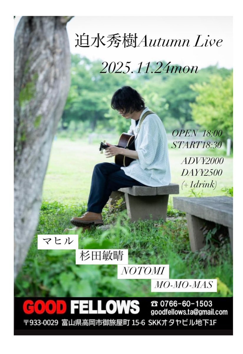 11月24日月曜日㊗️ 迫水秀樹Autumn Live ご予約で前売り料金になります。 こちらか出演者までご予約下さい😊 #迫水秀樹 #GOODFELLOWS pic.x.com/JJo2JU3P21