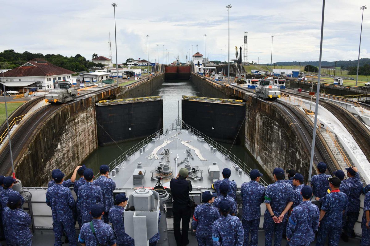 #練習艦隊 #かしま #しまかぜ は🇵🇦パナマ運河を経由し、カリブ海から太平洋へ🫡 全長82km、高低差26mの人工水路を3か所ある閘門で上下しながら通過します🚢 #遠洋練習航海 #実習幹部 #海上自衛隊 #君に見せたい景色 pic.x.com/2j2HsOfdxY
