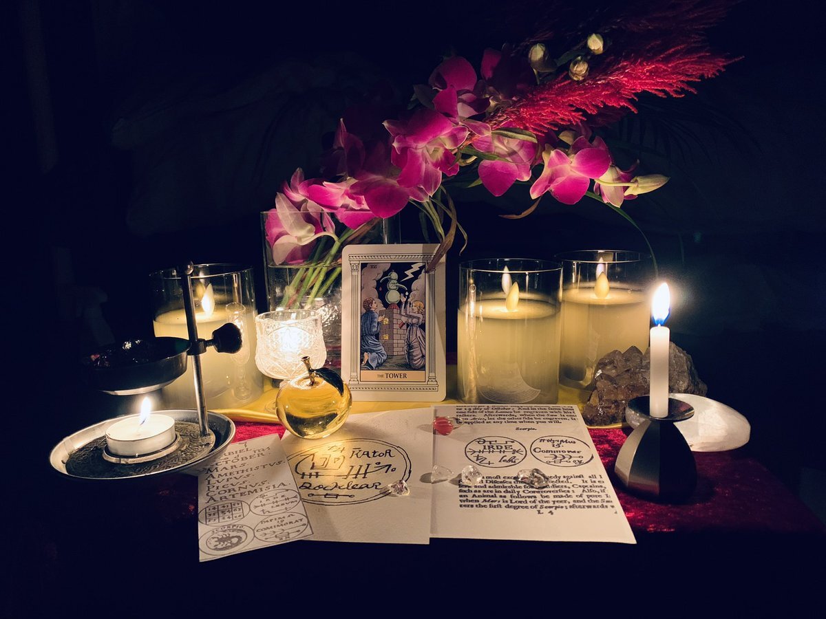 ♏️蠍座新月 #偽パラケルスス 錬金護符魔術 惑星:火星 錬金術:分離 解毒作用: 言葉の毒、沈殿した自己否定を、分離する。 植物:燃えるトゲ、妖艶→蘭、ケイトウ、ヤシの葉 伝統護符(右上)とアイクべカル、合成文字等で、偽パラケルスス風手法で描いたオリジナル護符(右下)もチャージ⚡️ #錬金術 pic.x.com/3ICjr4LpvJ
