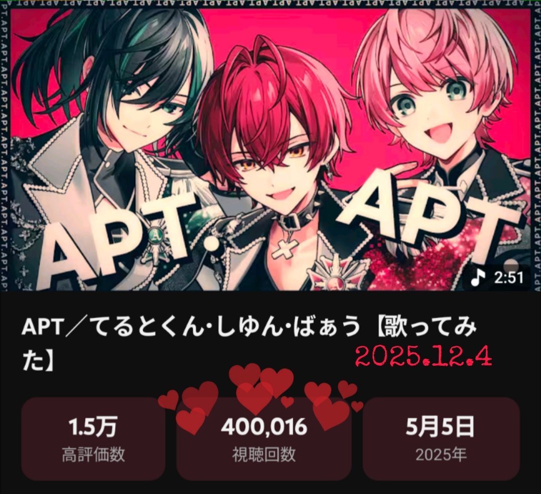 ◇ ♡ ♧ ♤ 新生 #騎士X - #KnightX -の魅力も 沢山の方々に伝わりますように✨ ⚔️ #ビターチョコデコレーション ⚔️ ✨congratulations✨ 400,000 views more !!🎉 ❤︎youtube❤︎ youtu.be/aj7mKHIVYO0?si… #ばぁうくん #しゆんくん #てるとくん #歌ってみた #KnightA #騎士A pic.x.com/WlrEHbQvco
