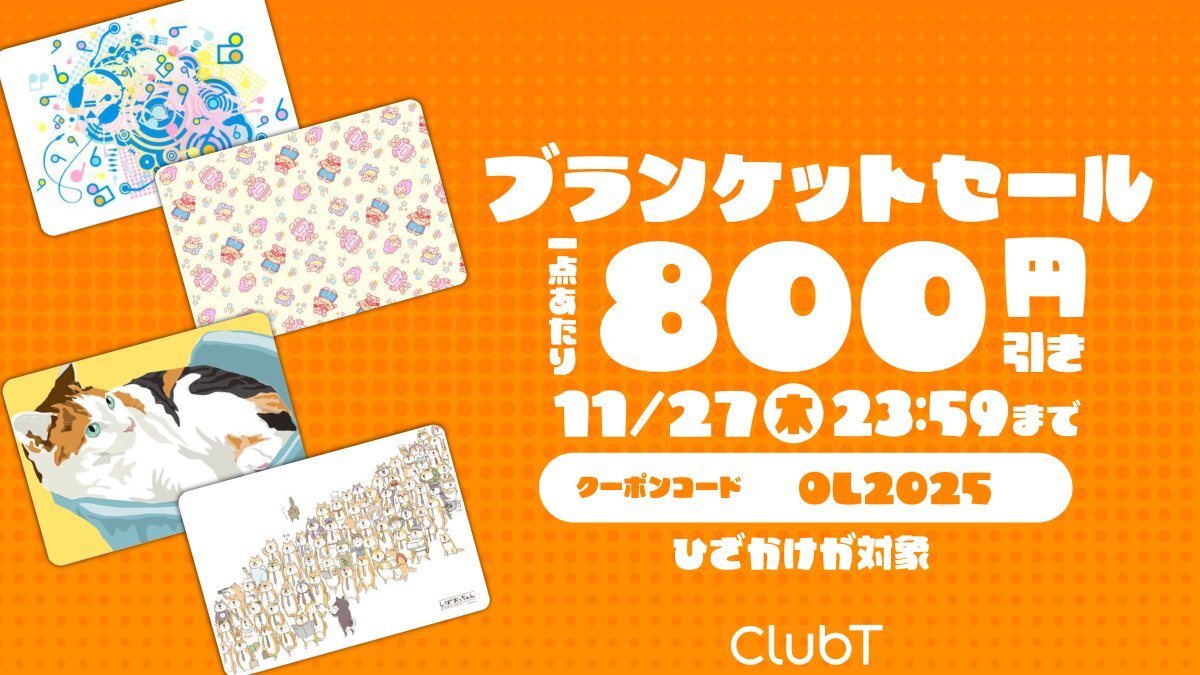 コートとマフラーが欠かせない時期になってきましたね🌬 ブランケットセールやりますよ!✨ 11月27日(木)いっぱいまで使えるクーポンを発行いたしました「OL2025」🎉 ひざ掛け対象1点あたり800円引きです!!✨ clubt.jp  #clubt  #デザインTシャツ pic.x.com/xw9BeVBLLt