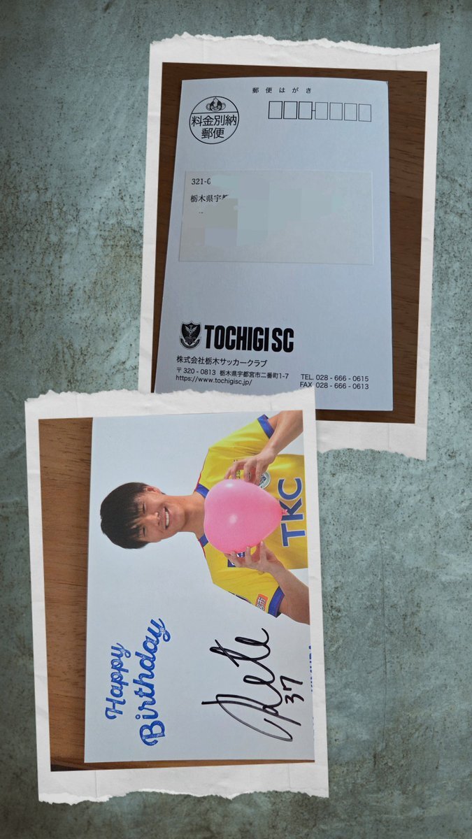 栃木SC様より木邨選手のバースデーカードが届きました‼️ ありがとうございました🙇 大事にします❗ はがきのスタンプがトッキーなのがすごく良いです。 PO含めて残り5試合、木邨選手、頑張ってください(o^-')b ! #栃木SC #CLUBT pic.x.com/9Nqx2Hxwcx