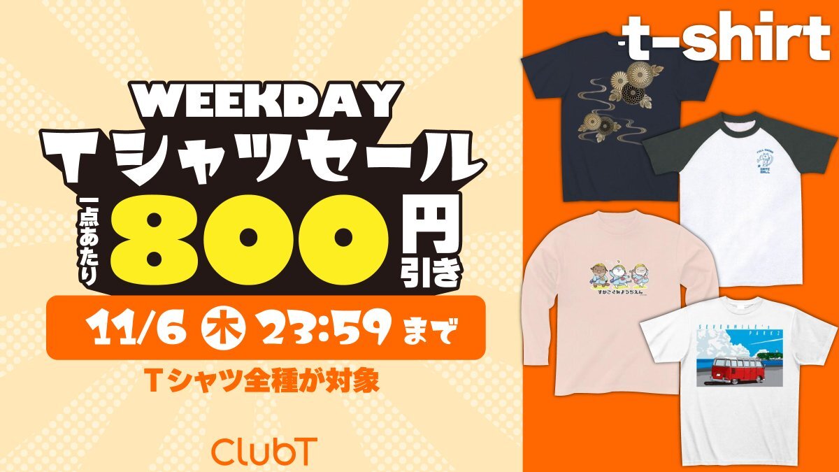 早くも布団が恋しい季節になってきました💤 Tシャツセールやりますよ!✨ 11月6日(木)いっぱいまで使えるクーポンを発行いたしました「sleep2025」🎉 Tシャツ対象1点あたり800円引きです!!✨ clubt.jp  #clubt  #デザインTシャツ pic.x.com/ryPwMhX0ux