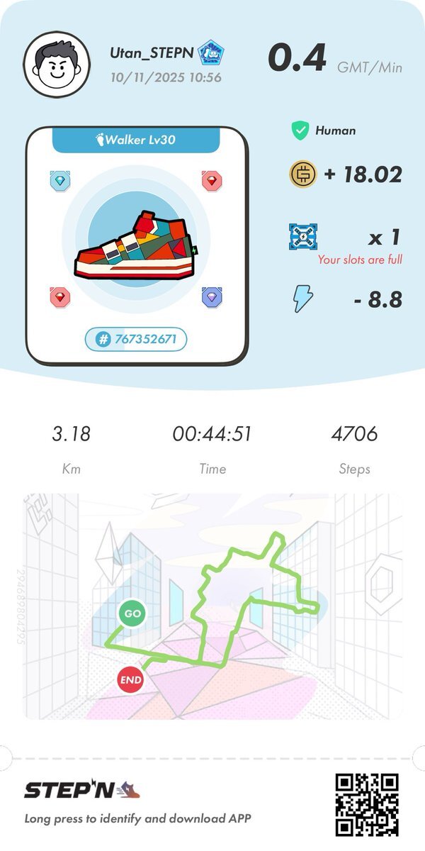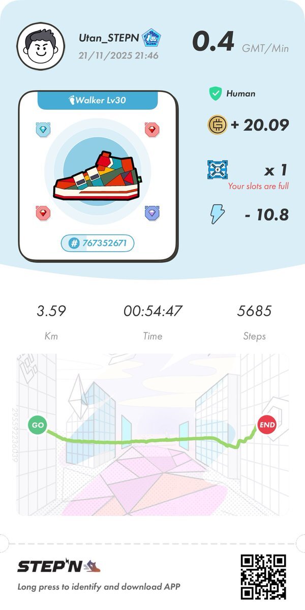 今日も今日とて、ポッキー&プリッツの日 とて #STEPN と #STEPNGO ローソンにサラダチキンスティックを引き換えにいきつつ、軽い朝の #散歩 #GMT #GGT ( #Diamonds ) #ローソンのサラダチキンスティック当たったよ pic.x.com/Oz1KRFzI6B