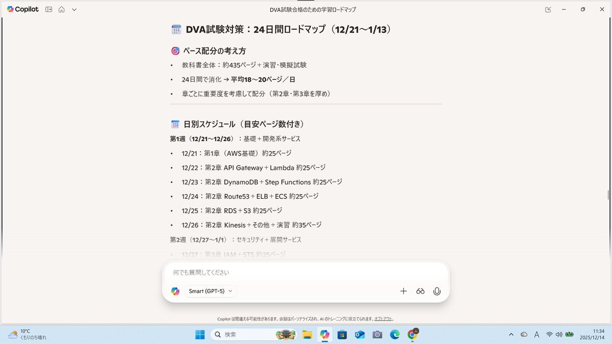 #Copilot に作ってもらった #DVA に約3週間で合格するための学習計画。こんな風に具体的に示してもらうと、その通りにやれば合格できるんじゃないかって気になるから不思議です(笑) #AWS認定試験 pic.x.com/xVRKmnRgYH