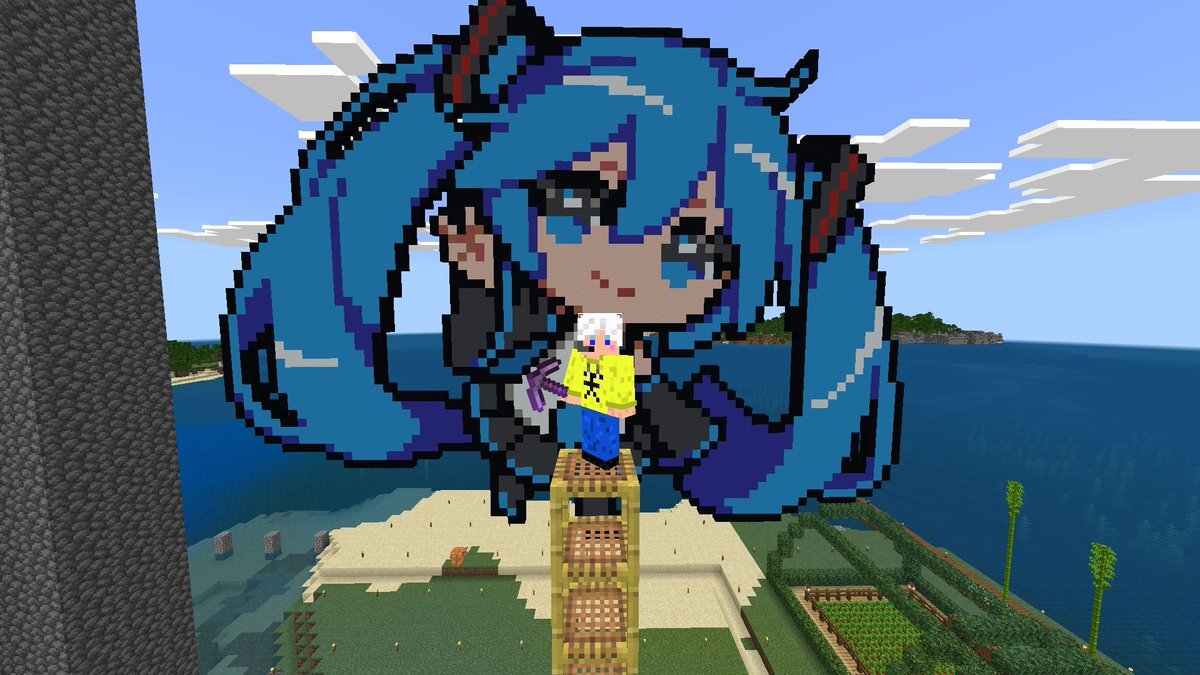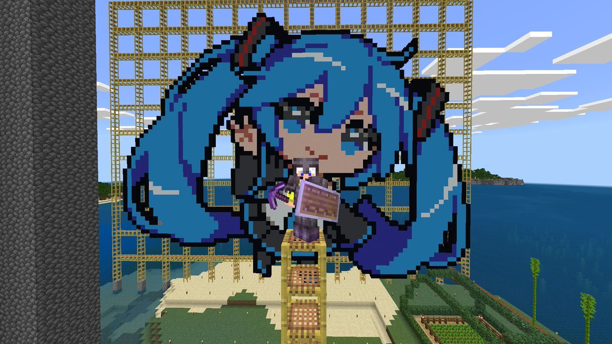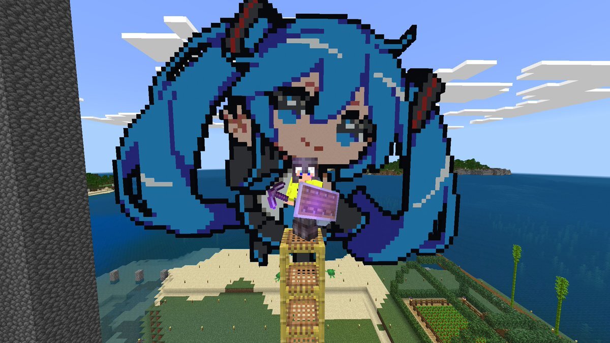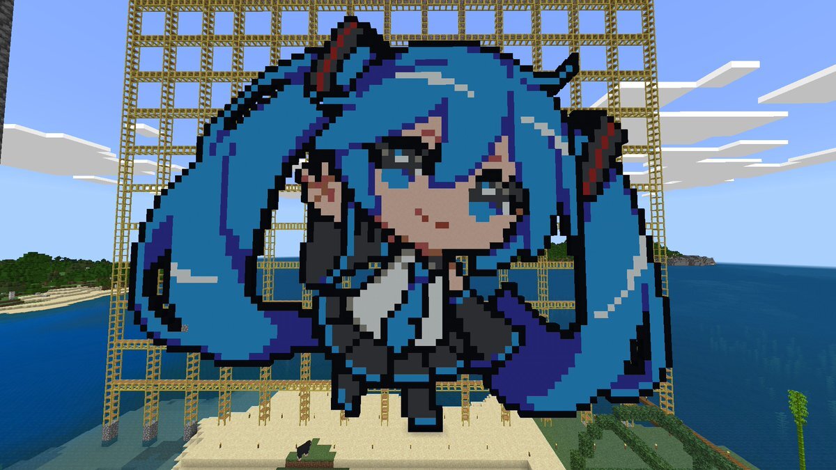 マインクラフトサバイバルでドット初音ミクを作りました!#初音ミク #Minectaft pic.x.com/Xcmg3SRCaJ