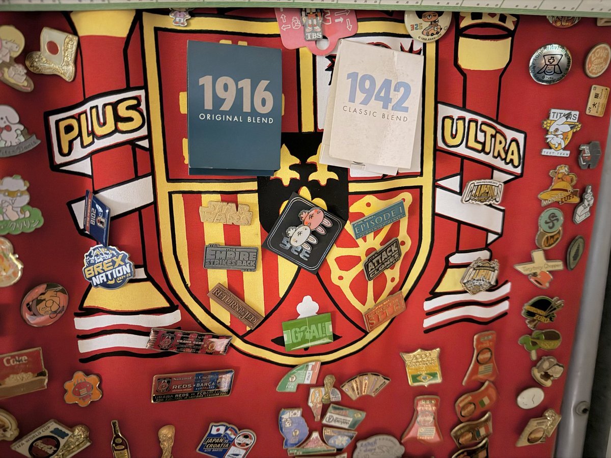 今週のヒロアカはこの時間に見ちゃいけないやつだった🫣 眠気も覚めてしまった🥹 だってたまたまだけど自分のピンバッジコレクションに使ってるフラッグを見たら『PLUS ULTRA』って書いてあったからつい🤜✨ #ヒロアカ #僕のヒーローアカデミア #クライマックス #PlusUltra #峯田良かった pic.x.com/G7juQvwB7P