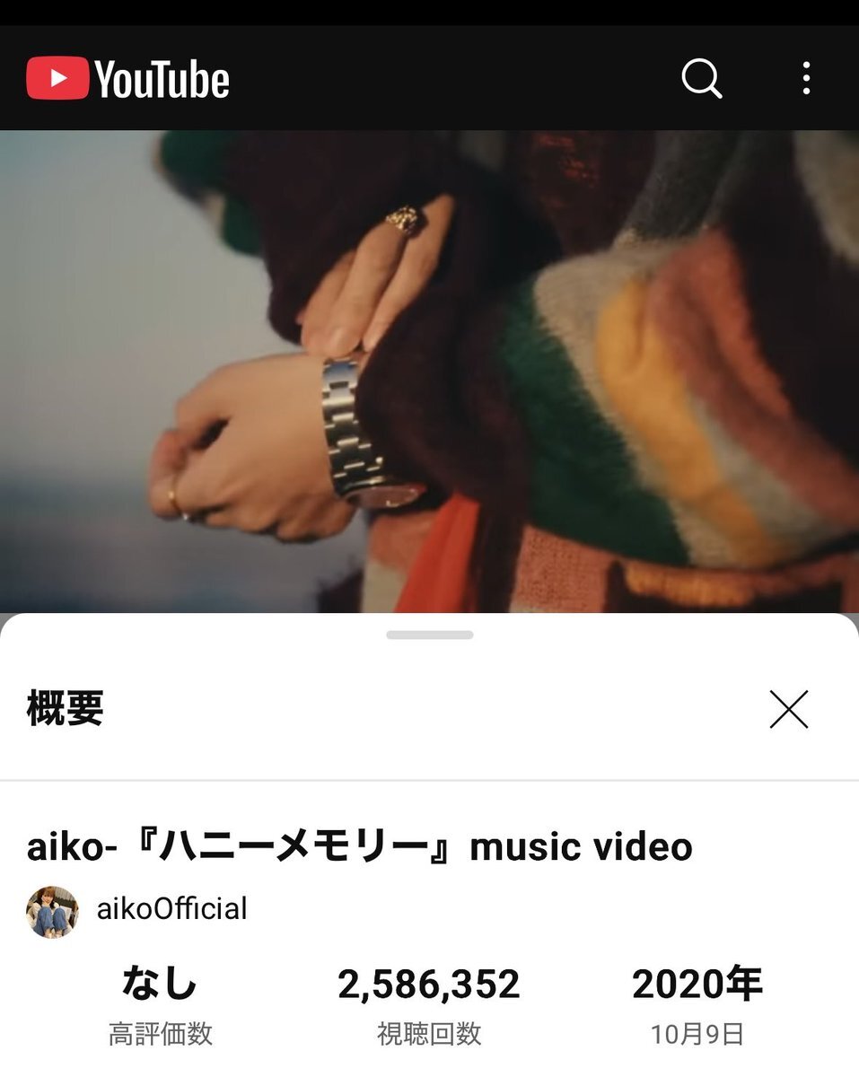 aikoさんの曲は気になったり、胸に刺さったり、涙が出たりする歌詞が一つの曲に幾つもあり、その部分も、時が違うとまた違う感動を覚えます。 永遠に一つの曲を語れる醍醐味 よくaikoさんの「沼」にはまるといいますが、それはこの「無限のループ」の事なのかなとも感じます。 #aiko @aiko_dochibi
