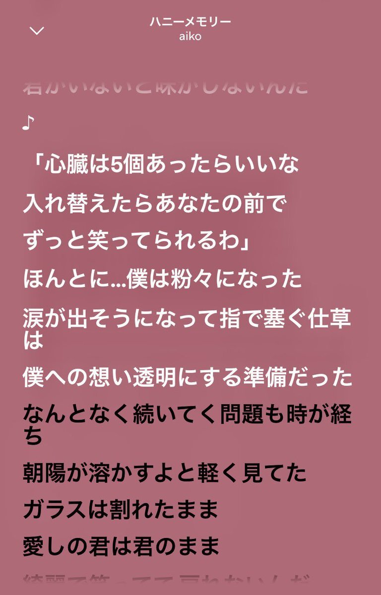 aikoさん、本日10月21日「ハニーメモリー」リリース5周年おめでとうございます。 一人称僕の曲。題名通り別れた?相手を愛おしむaiko節に溢れる名曲 「心臓は5個あったらいいな 入れ替えたらあなたの前でずっと笑ってられるわ」 そして「粉々に」なる僕。この曲の名場面です。 #aiko @aiko_dochibi pic.x.com/P8pyTEB8k3