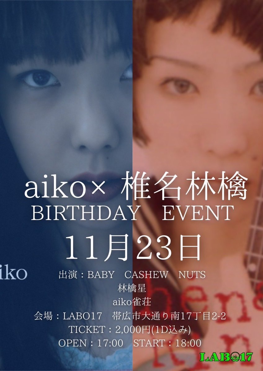 11/23(SUN) LABO17 aiko×椎名林檎 BIRTHDAY EVENT 【林檎星】と言う今回初出しのバンドで出演します! aiko好き、椎名林檎・東京事変好きな方には堪らないライブになると思いますので是非よろしくお願いします! #aiko #椎名林檎 pic.x.com/1T0T0WAIY2