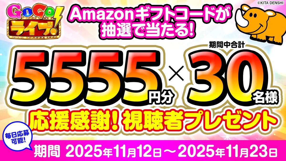 【本日8日目】 🌈毎日応募可能🌈 GOGOライブ視聴者プレゼント 【参加方法】 ①@gogolive777をフォロー ②当ポストを(引用)リポスト #アマギフ 5555円分が合計30名様に🎁 #GOGOライブ を入れ、配信の感想や ご意見を書いてくれると当選率UP🎯 〆切:2025/11/23(日) 当選連絡は後日DMにて✨ #PR x.com/gogolive777/st…