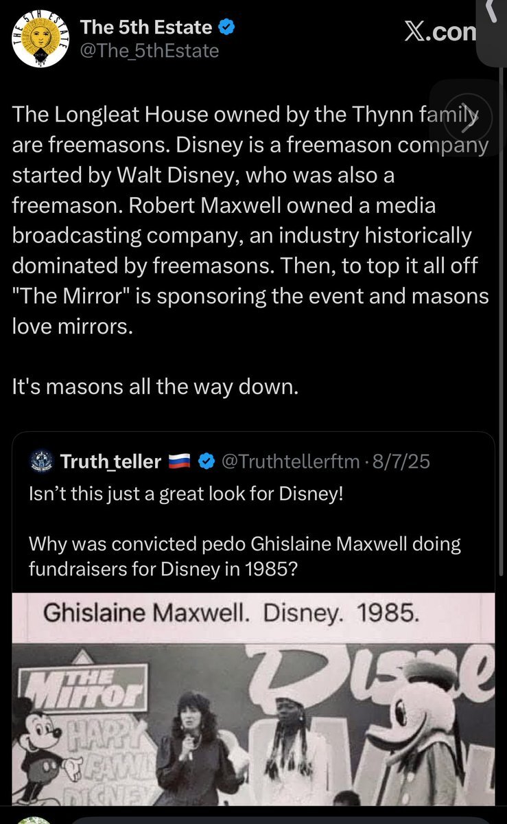 #バース邸 は、#マクスウェル が #ディズニー と資金集めイベントを行った場所だ。彼らは明らかに #エンタメ 業界 のネットワークに関与し、影響を及ぼしている。 #Bathhouse #Bathmanor #Maxwell #Disney #entertainment #エルバ・ホープ財団 は現在、 #Elbahopefoundation ↓ x.com/miketheking151…
