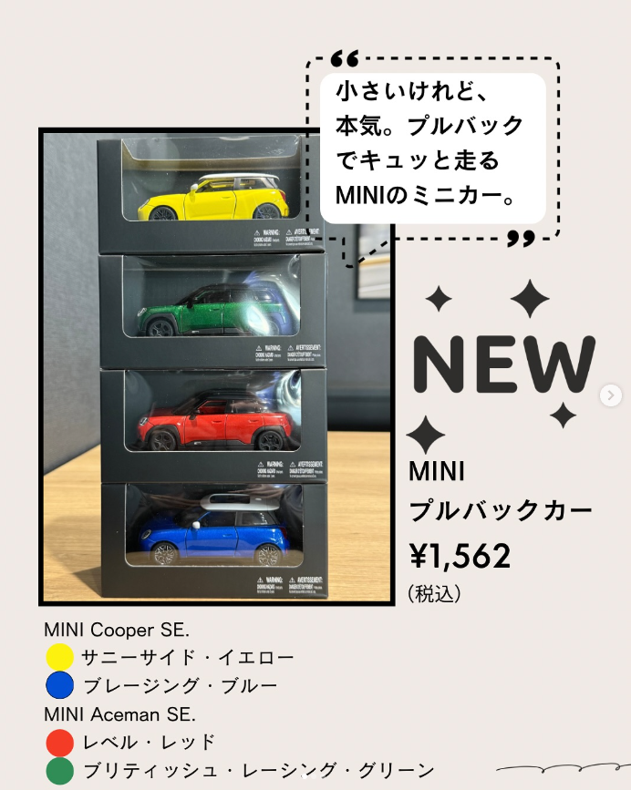 【MINI千葉北】 【NEW】MINIプルバックカー入荷🚗✨ 走らせて楽しい大人気ミニカー😄 ショールームでぜひチェックしてください❣️ #MINI #mini千葉北 #プルバックカー #ミニカー #miniのある暮らし #minicooper pic.x.com/B2RMhUjxP3