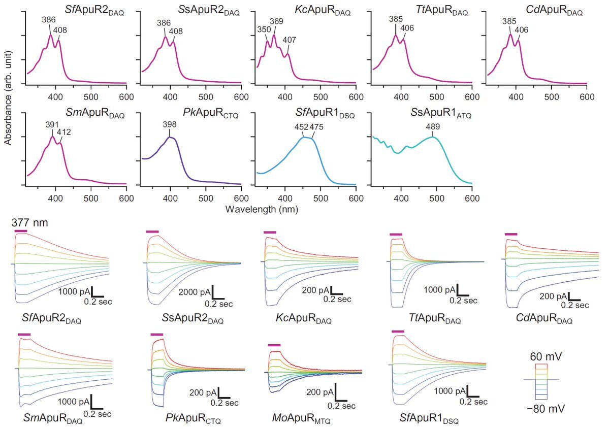 初めての紫外光に応答する光開閉式イオンチャネルであるApusomonadロドプシンに関する論文がPNASに公開されました!🎉既存のチャネルロドプシンとは全く別のファミリーで、輸送機構も大きく異なっています✨🦠今後は多波長光操作などへの応用が期待されます🔬 pnas.org/doi/full/10.10… #OpenAccess pic.x.com/xgguQIOAvd