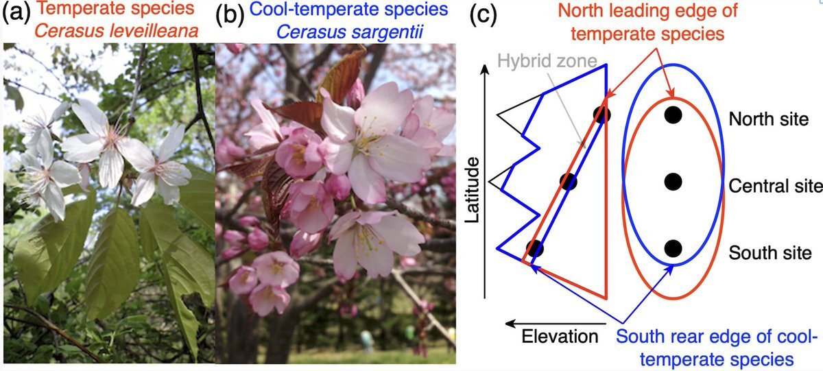 #OpenAccess Differential admixture and introgression in Cerasus hybrid zones at the south rear edge of cool-temperate C. sargentii and the north leading edge of temperate C. leveilleana Teruyoshi Nagamitsu,  Kahoko Tochigi,  Shuri Kato doi.org/10.1111/1442-1…