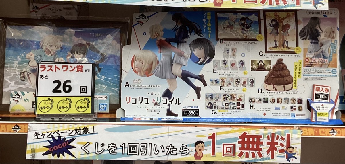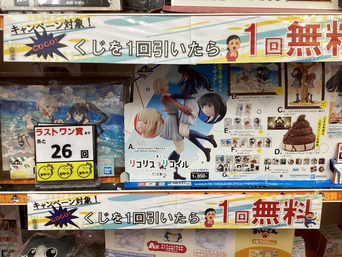 【 #リコリスリコイル 】残り26回 【 #Reゼロから始める異世界生活 】残り22回 【 #ペコティータイム 】残り16回 それぞれお得🉐なキャンペーン中のくじとなってます😆 ラストワン賞まで残りわずか‼️ ぜひチャレンジしてみて下さい✨ #トレカチャンピオン福知山店 #一番くじ pic.x.com/FbaOlYV8fb