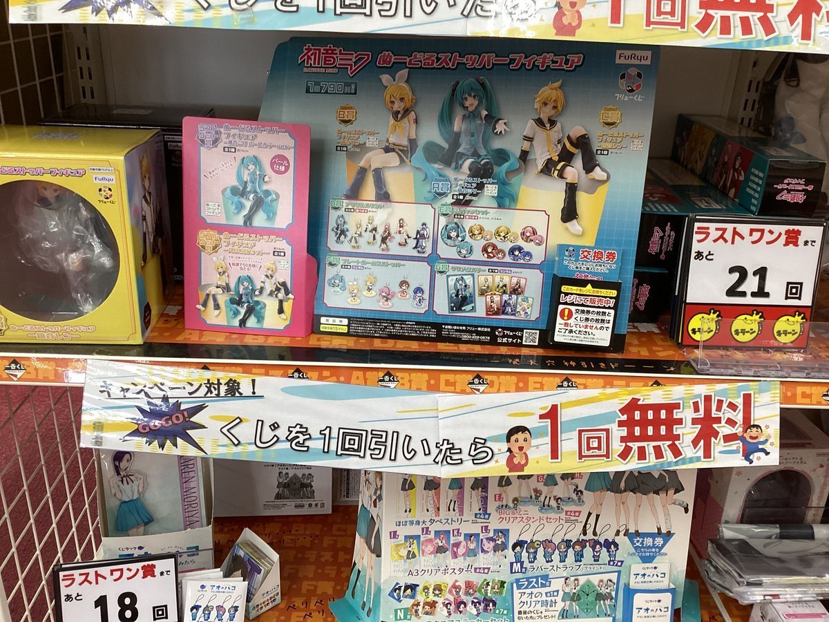 【 #フリューくじ #初音ミク ぬーどるストッパーフィギュア 】あと21回 【 #タイトくじ #PEKO TEA TIME 】あと16回 【 #リコリスリコイル 】あと28回 【 #Reゼロから始める異世界生活   -I will remember this day.- 】あと25回 #ビデオインアメリカ福知山店の一番くじ🇺🇸 pic.x.com/wigdsGmrv2