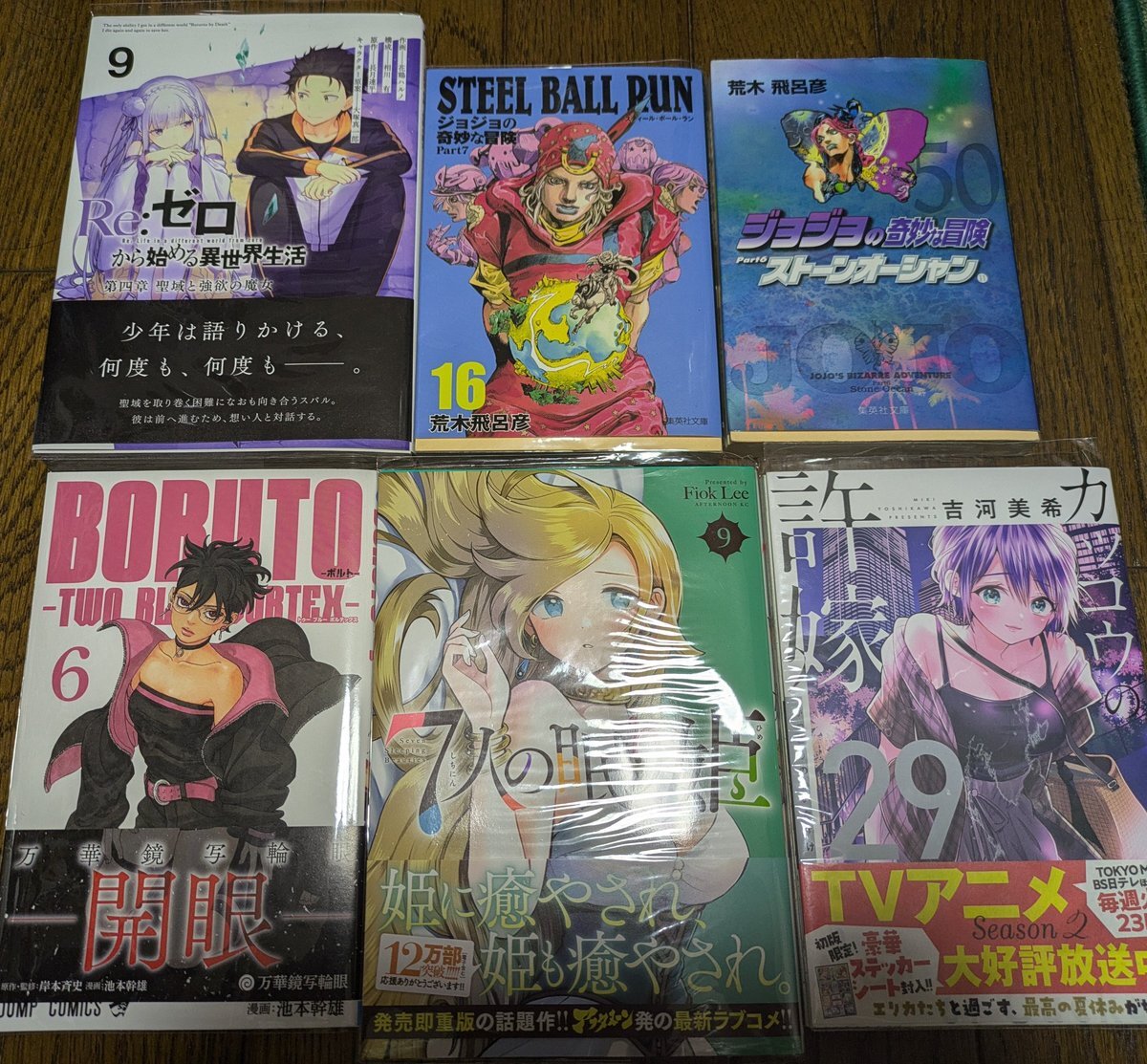 寝る前に、読む漫画 reゼロ9と、steelballrun16とストーンオーシャン11と、ボルト6と7人の眠り姫9と、カッコウ29を、読んで寝よ🥱 #寝る前に  #読み返す漫画  #reゼロから始める異世界生活 #steelballrun #ストーンオーシャン #boruto #7人の眠り姫 #カッコウの許嫁 #既刊 #漫画好き #ブログ書け pic.x.com/ZVN4ioMFW3