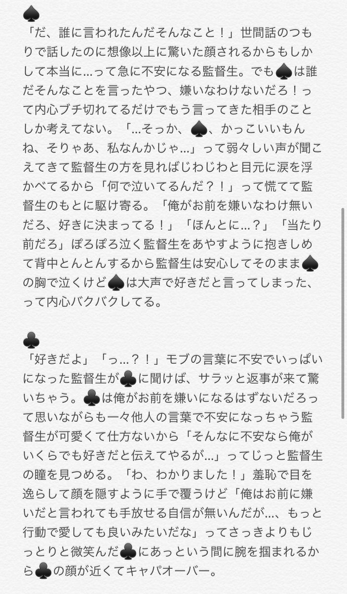 【再掲】 モブに『お前の彼氏お前のこと嫌いらしいぞ』なんて嘘を吹き込まれた監督生と後日それを本人から聞いたtwst彼氏 🃏寮 🌹❤♠️♣️♦️ #twstプラス pic.x.com/3IPYR082Vl