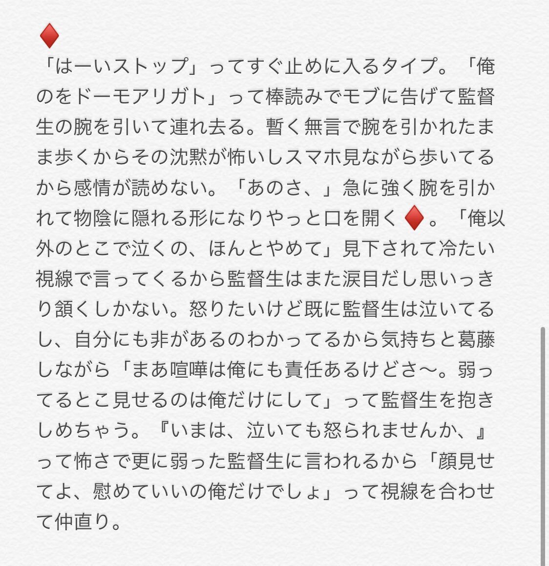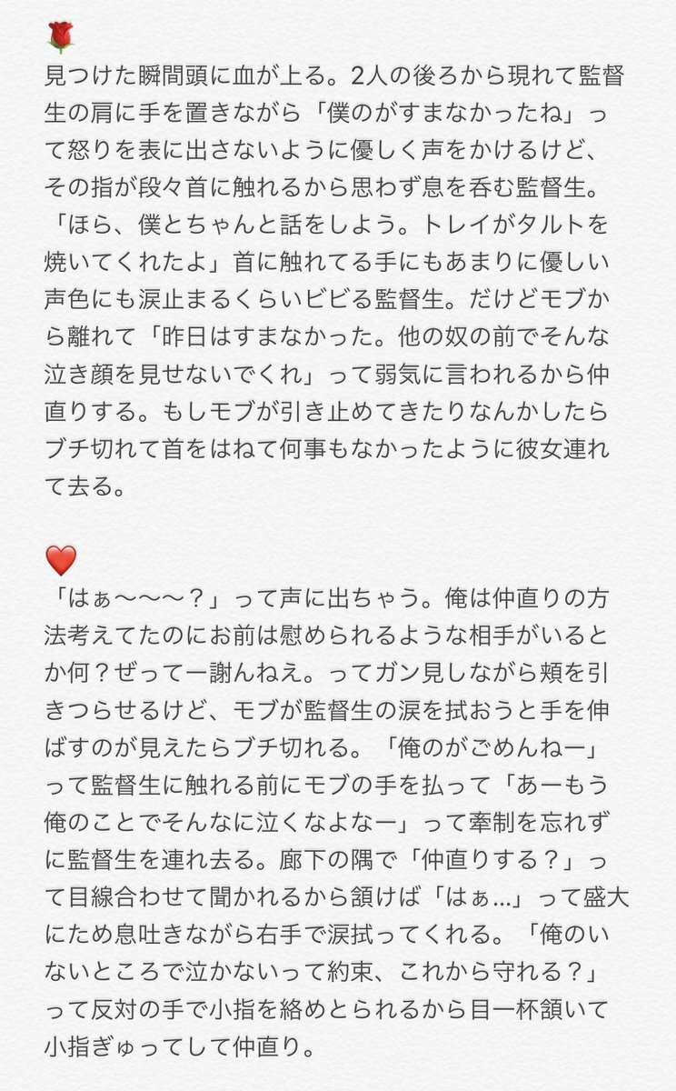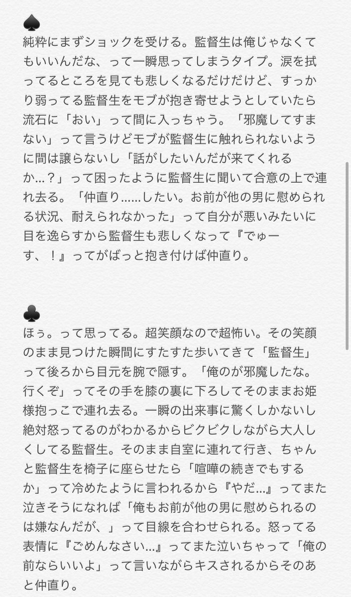 【再掲】 喧嘩した次の日泣いている監督生がモブに慰められてるのをみたtwst彼氏 🃏寮 🌹❤♠️♣️♦️ (ツリーに他寮繋げる予定) #twstプラス pic.x.com/ziAaleHBTO