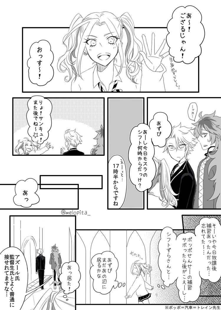 ボドゲ部とギャル監督生まんが(アズ監♀顔あり) イデ監に引き続き、あずぴとギャル監ちゃんも部室でイチャつかせた 付き合ってません #twstプラス x.com/melopita_/stat…