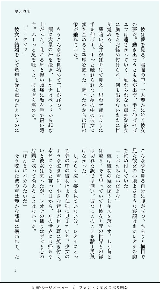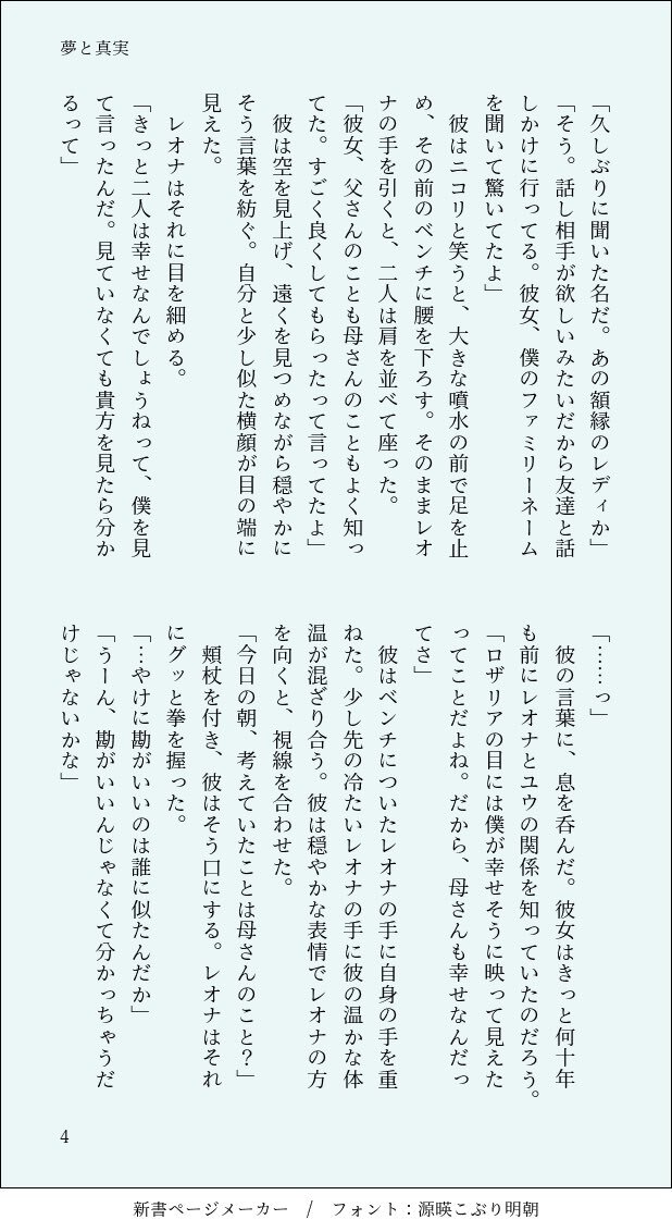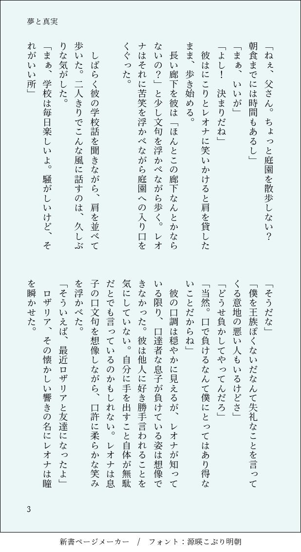#twstプラス レオ監♀🦁🌸1/3 「嘘と真実」 結婚後、高校生の息子と🦁が🌸の話をする話 ※息子が出てきます(名前はなし) ※王宮の召使に名前あり pic.x.com/aWSofoLBw8