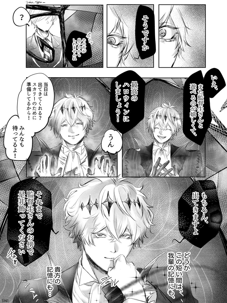 イベントお疲れ様でした。展示していたハロウィン漫画です ※イデ監♀ (1/2) #まほうのワルツアフター #twst_NL #twstプラス pic.x.com/YaEbviLRWx
