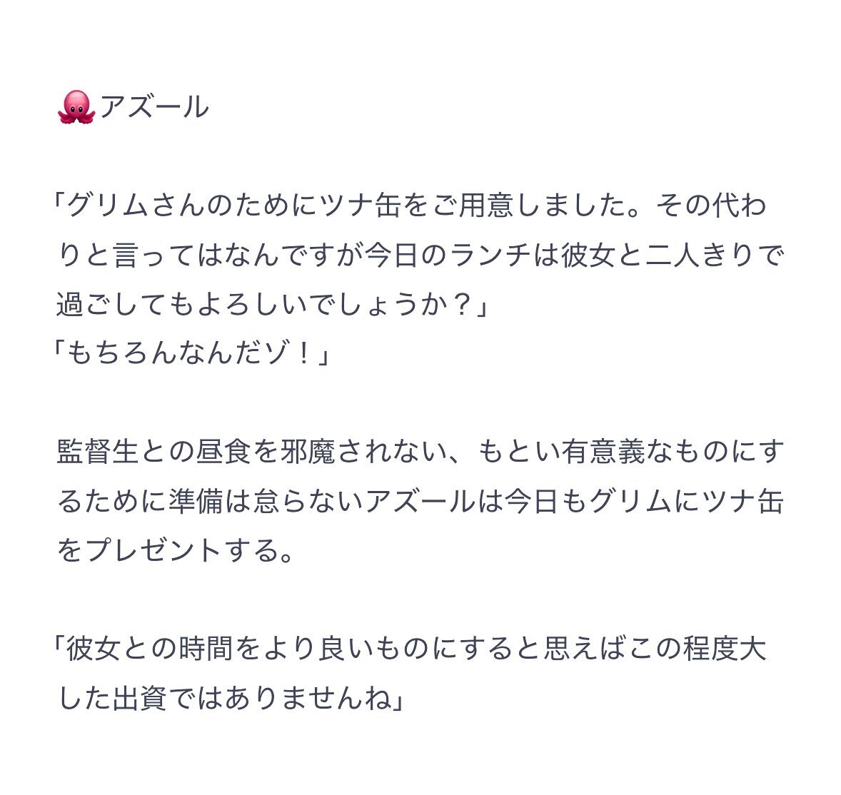 #twstプラス 本編3章後から監督生のことが気になる🐙。なんとかして連絡先を交換するため接触を図るも、慣れない感情に掻き乱され混乱した結果、「僕と連絡先を交換しないと、この先貴女に耐えられないような不幸が訪れますよ」と胡散臭い占い師みたいな口調になってしまった回