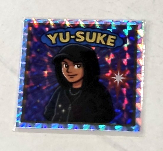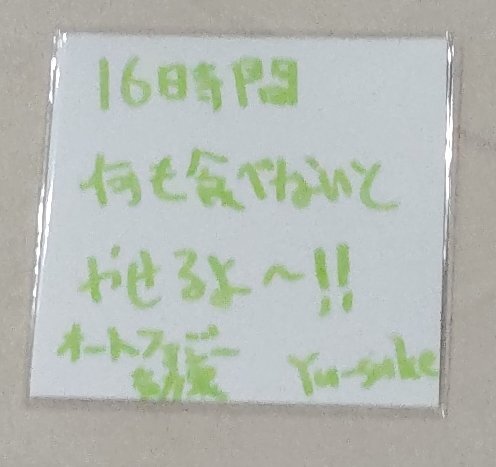 ゆーすけさんのシールの裏にメッセージが書いてあった〜!😆 僕、過去に16時間以上何も食べなかったことがあります!😢 でも、今はきちんと食べてます!😊 来年も見たいです! サロンキティで待ってます!👍 #HENNESSY #YUSUKE pic.x.com/8bXm1FOc52