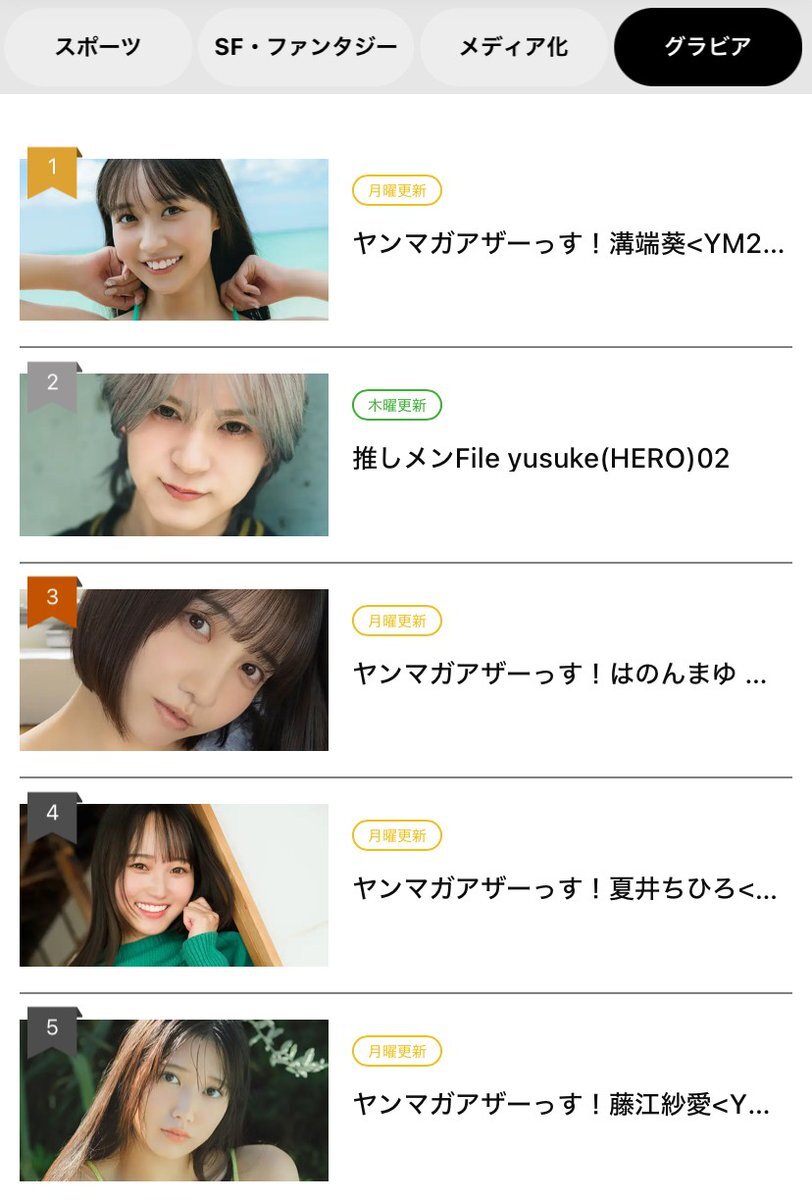 🎊グラビアランキング🎊 第1位『ヤンマガアザーっす! #溝端葵』 yanmaga.jp/viewer/gravure… 第2位『推しメンFile #yusuke(HERO)』 yanmaga.jp/viewer/gravure… 第3位『ヤンマガアザーっす! #はのんまゆ、#すずめ』 yanmaga.jp/viewer/gravure… yusukeくんが第2位にランクイン🎊 pic.x.com/cr0zaqfJxE
