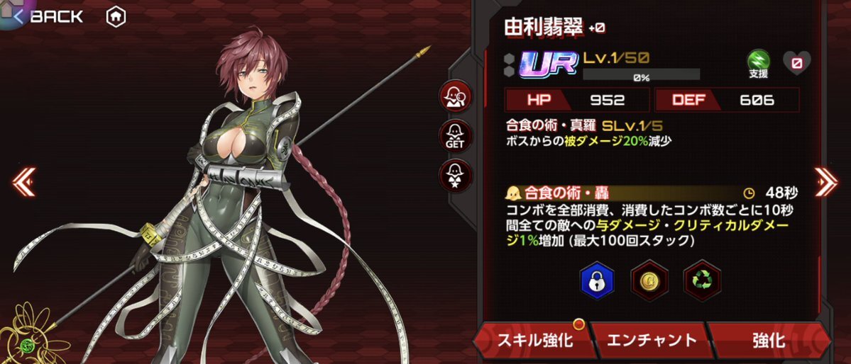 ■アクション対魔忍、サポーターの『由利翡翠』をやっと確保できました(*´ω`*) ※アイナの編成に使いたかったので手に入れて嬉しいですが、スキルレベル エンチャントをあげるのに時間掛かりそうですね( ̄ω ̄;) pic.x.com/48lg0lIAAT