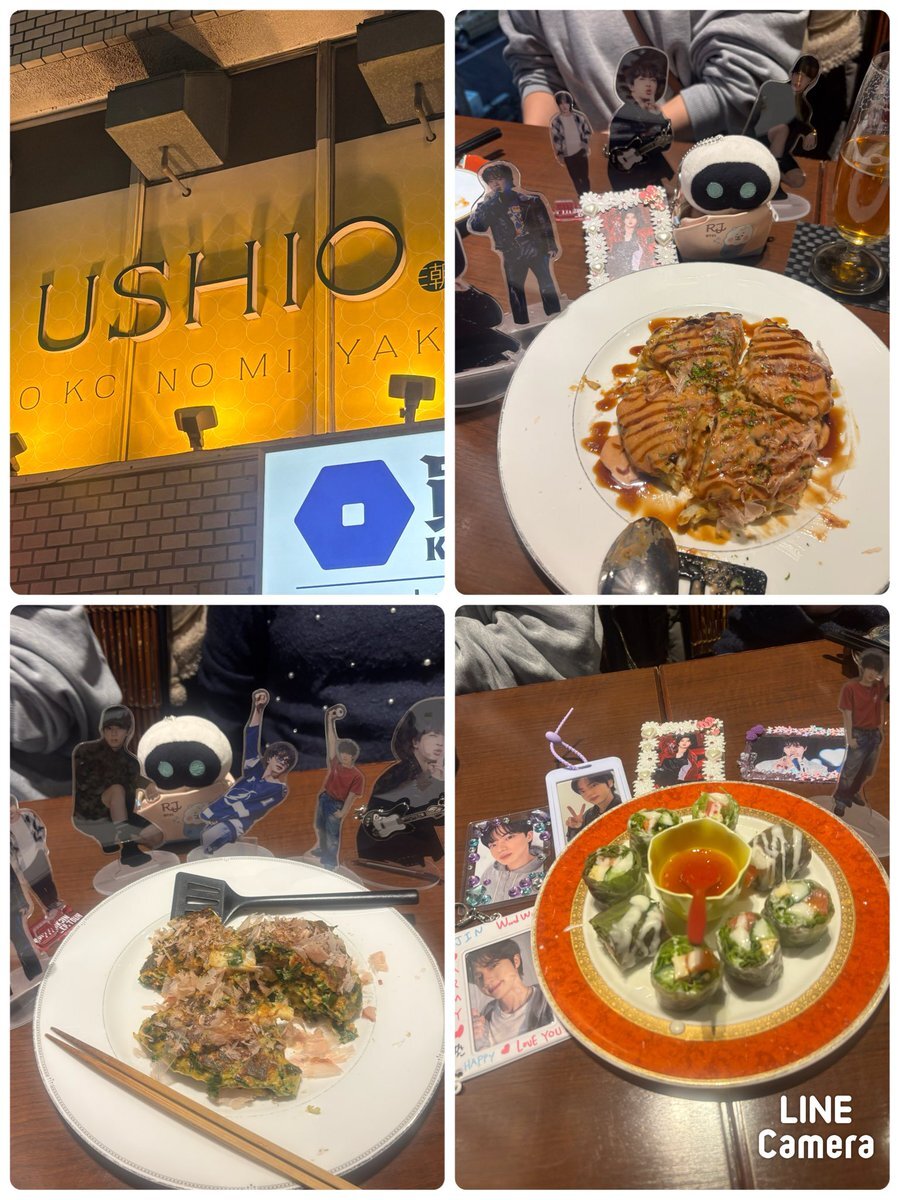 昨日は渋谷でテテを見た後に、ジンくんが訪れた六本木のお好み焼き『USHIO』さんへ✨ ジンくんが注文した「ミックス焼」と、「イカとにらのピリ辛焼」ふわふわ♡追加で生春巻きも。全部すごく美味しい♡ ジンくんの席で撮影だけ。 店主さんは気さくにジンくんのお話して下さり楽しかった✨ #JIN pic.x.com/WHEV4XLYgd