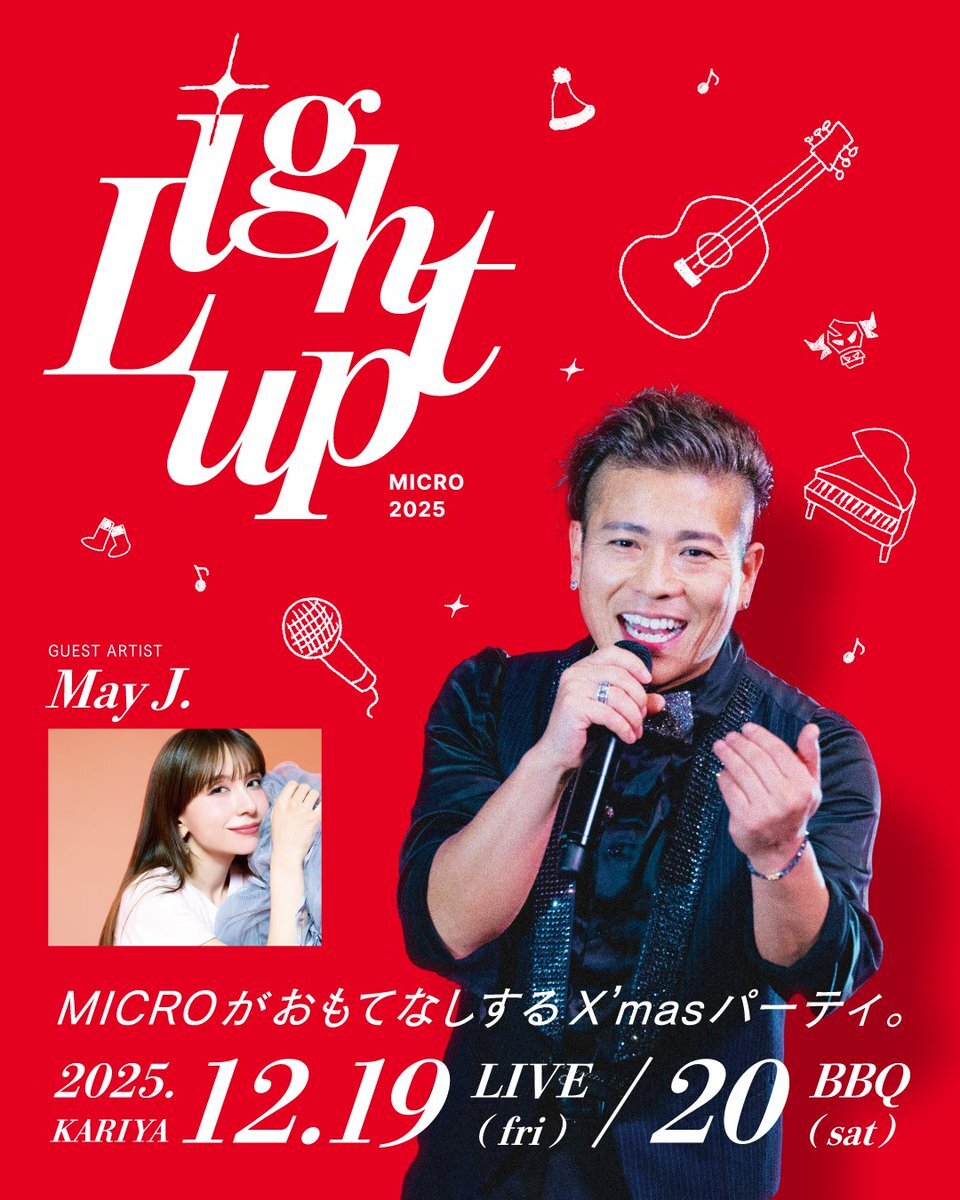 ✨重大発表✨ 「MICROがおもてなしする LIGHT UP Xmas Party 2025」 🎄Guest Artistに May J. さんの出演が決定!!🔥 @MayJamileh 圧倒的な歌唱力と心震えるステージで、 この冬、刈谷の夜に“光”を灯してくれます💫 ぜひ、一緒に特別なクリスマスの夜を💡 l-tike.com/search/?lcd=43… pic.x.com/R7s81wRlEd