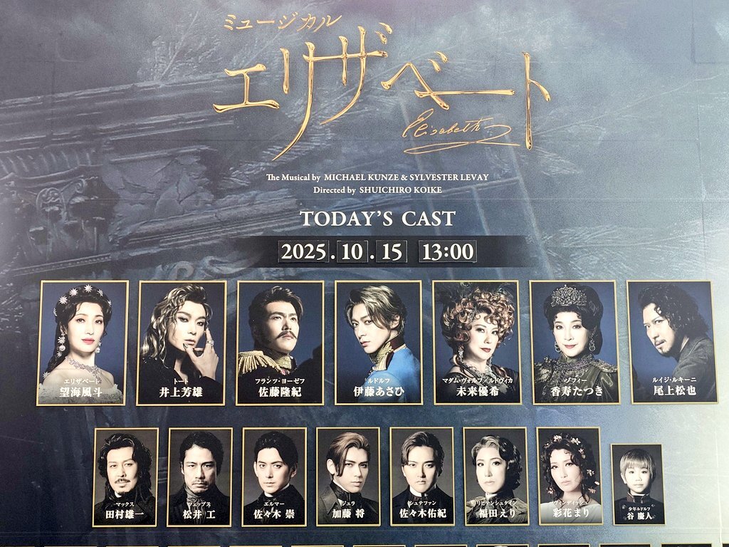 2025.10.15マチネ 前半に🎫集中したため10月は今日で見納め😭(2日に1回て💧) 後半も欲しかった! けどしかたなし、、 シシィとルキーニ初めまして😊 今日も閣下とTDに全てを捧げ翻弄されて参ります🪶💖 #エリザベート #TD  #井上芳雄 pic.x.com/ZlJS9bBbps