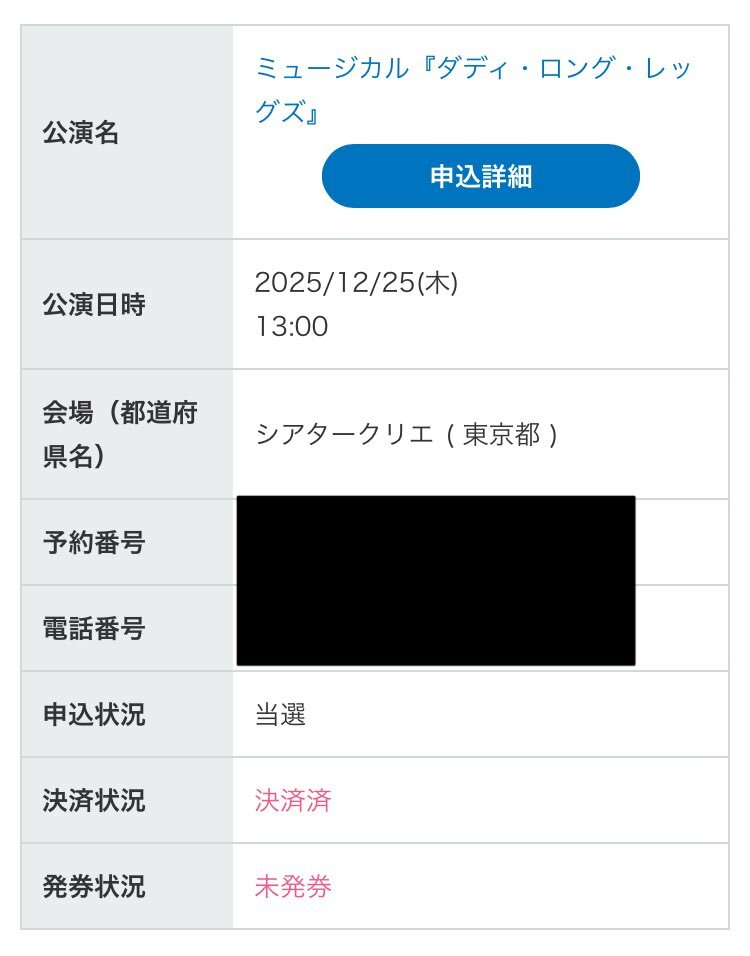チケットお譲りします🎫 12/25 13:00〜 日比谷シアタークリエ 『ダディ・ロング・レッグズ』 井上芳雄さん 坂本真綾さん 楽しみにしていたのですが行けなくなってしまったため、チケット1枚お譲りします。 定価+手数料 13,105円 11/28以降に発券後、郵送いたします。 pic.x.com/Ho1hw2RRKw