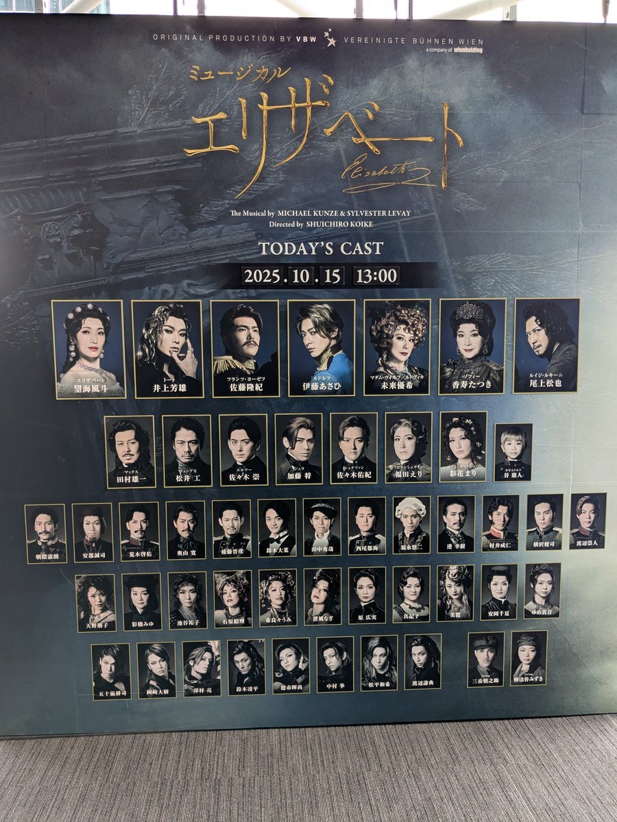 これからシアターオーブにて 望海風斗、井上芳雄、佐藤隆紀、尾上松也によるエリザベート観劇♪ チケット1枚余ってしまったけど、元同僚が来てくれて良かった(・∀・) pic.x.com/uLn1cKNBty