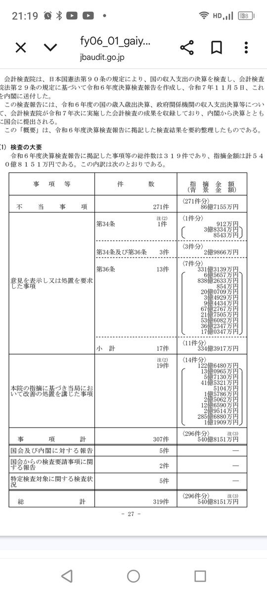 返信先:@moriken0119会計検査院の検査結果で、指摘があった予算が550億程度のものなんだがな。 素人考えの恐ろしさたるや。 pic.x.com/773hEegg3q