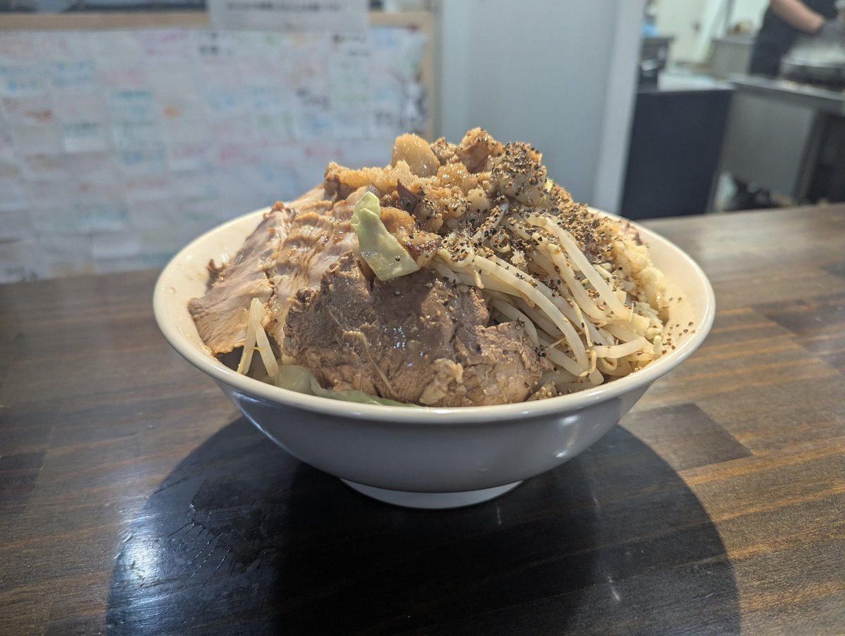 限界を超えろ津田沼校🍜 明日から千葉県高校野球選手権大会なので、パワーをつけに来店!心なしか醤油のキレが前より効いてて更に美味しくなった☺(汁無し300、豚増し) #津田沼 #限界を超えろ津田沼校 #ラーメン二郎 #二郎系 #豚増し pic.x.com/sp9lbJitbi