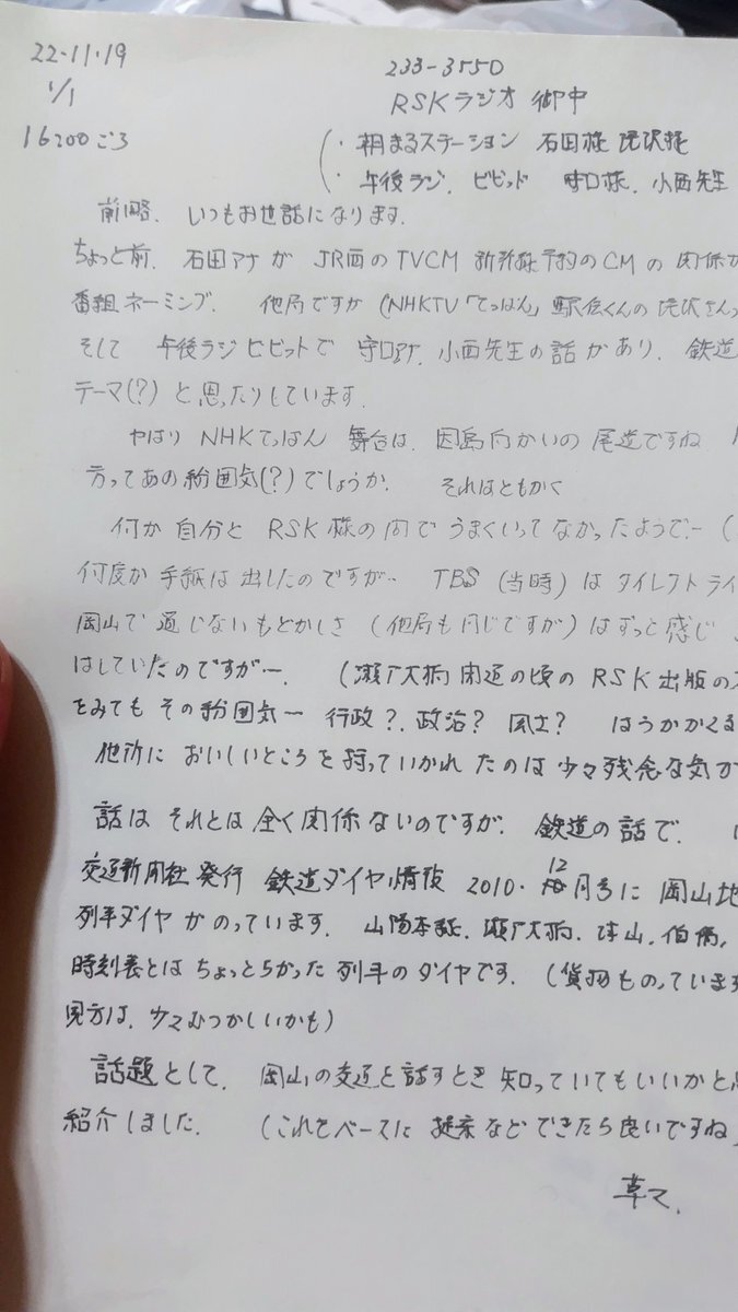 これも22年11月ですから NHK 岡山 80年という裏の RSK 宛の ちょうど RSK ラジオ 午後ラジ ビビビットで 守口さんと小西先生 岡山で鉄道考古学の方 そして朝ドラ 鉄板が 尾道の造船所 つまり常石造船 が舞台ということで 広島因島出身の 石田さん どうでしょう という そんな話なのですが 完全スルー pic.x.com/mnnn7nWfJ0