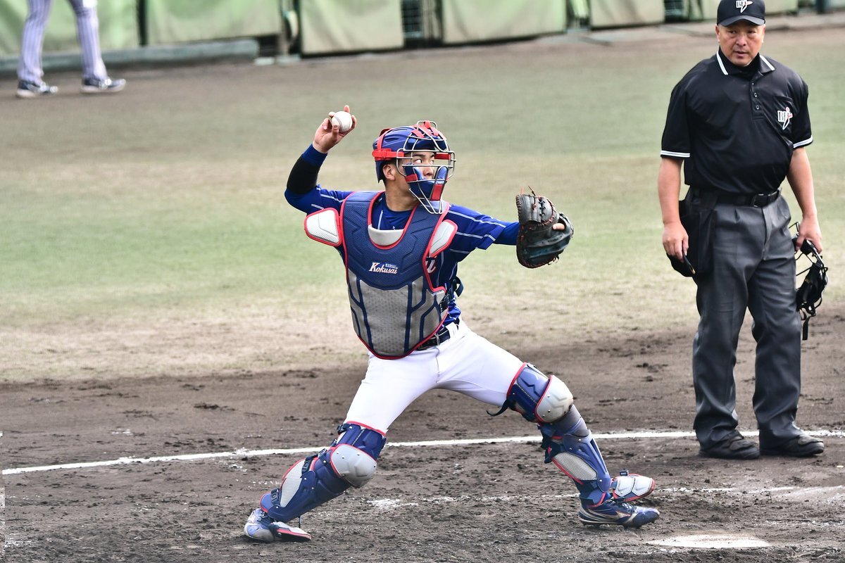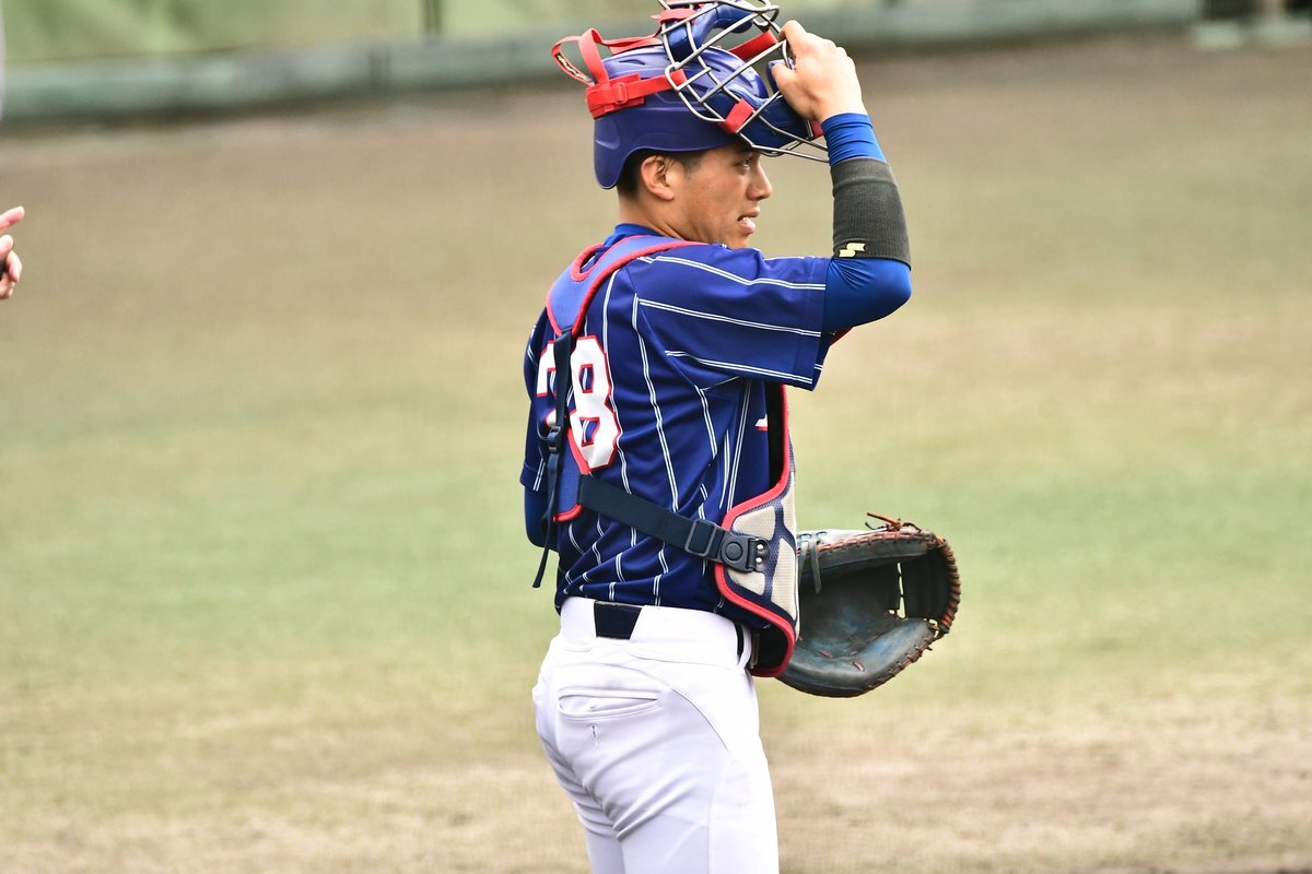 2025/11/18 兵庫県知事杯 関西国際大・岩木 汰亮捕手(②中京) 今秋の阪神リーグベストナイン捕手、打つ方は2安打、強豪・日本製鉄瀬戸内相手に終盤まで優位に戦った好リードが光りました。深尾 哲平(大和高田クラブ)のような捕手になるかに注目。 pic.x.com/bEJjmC81Cb