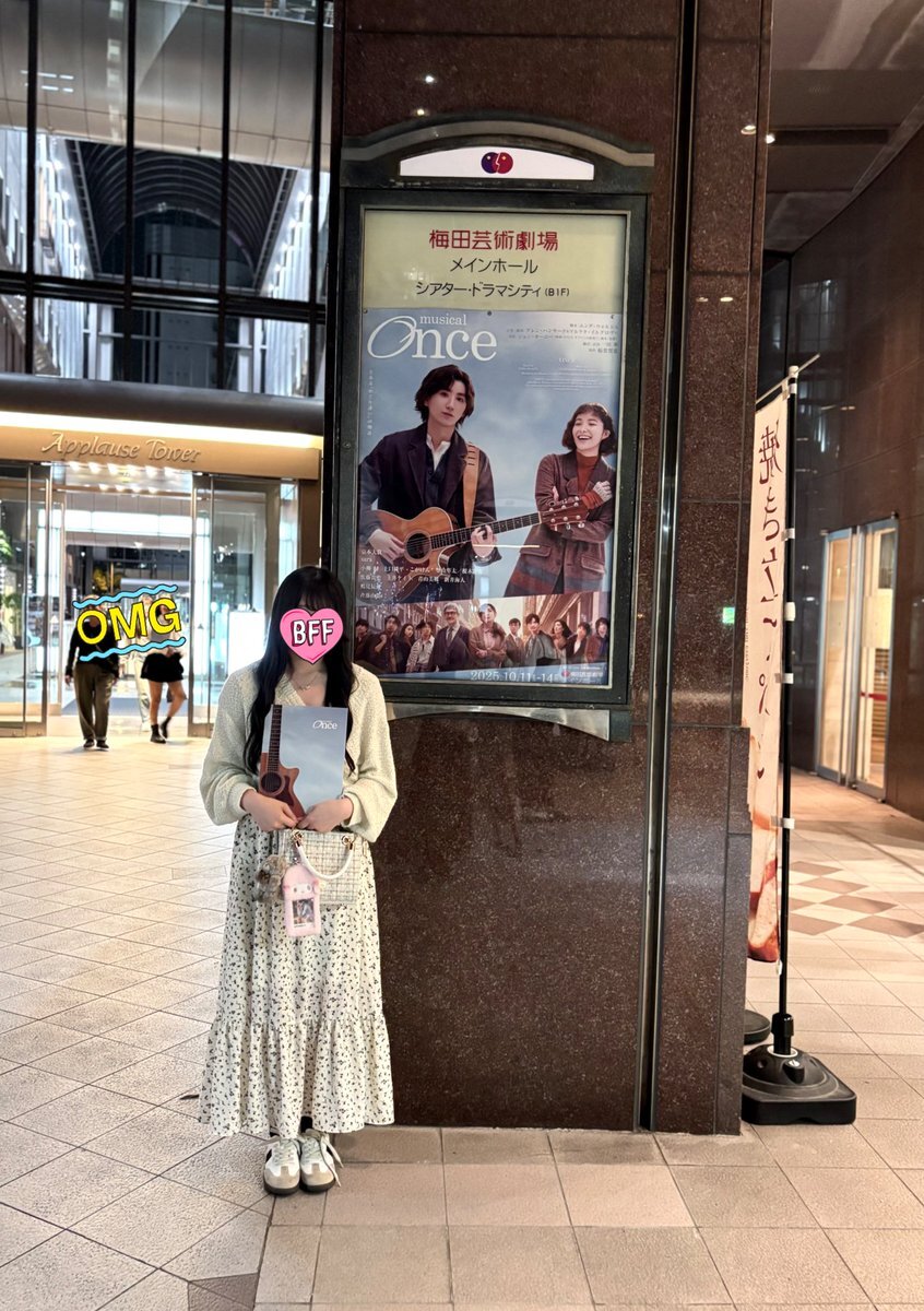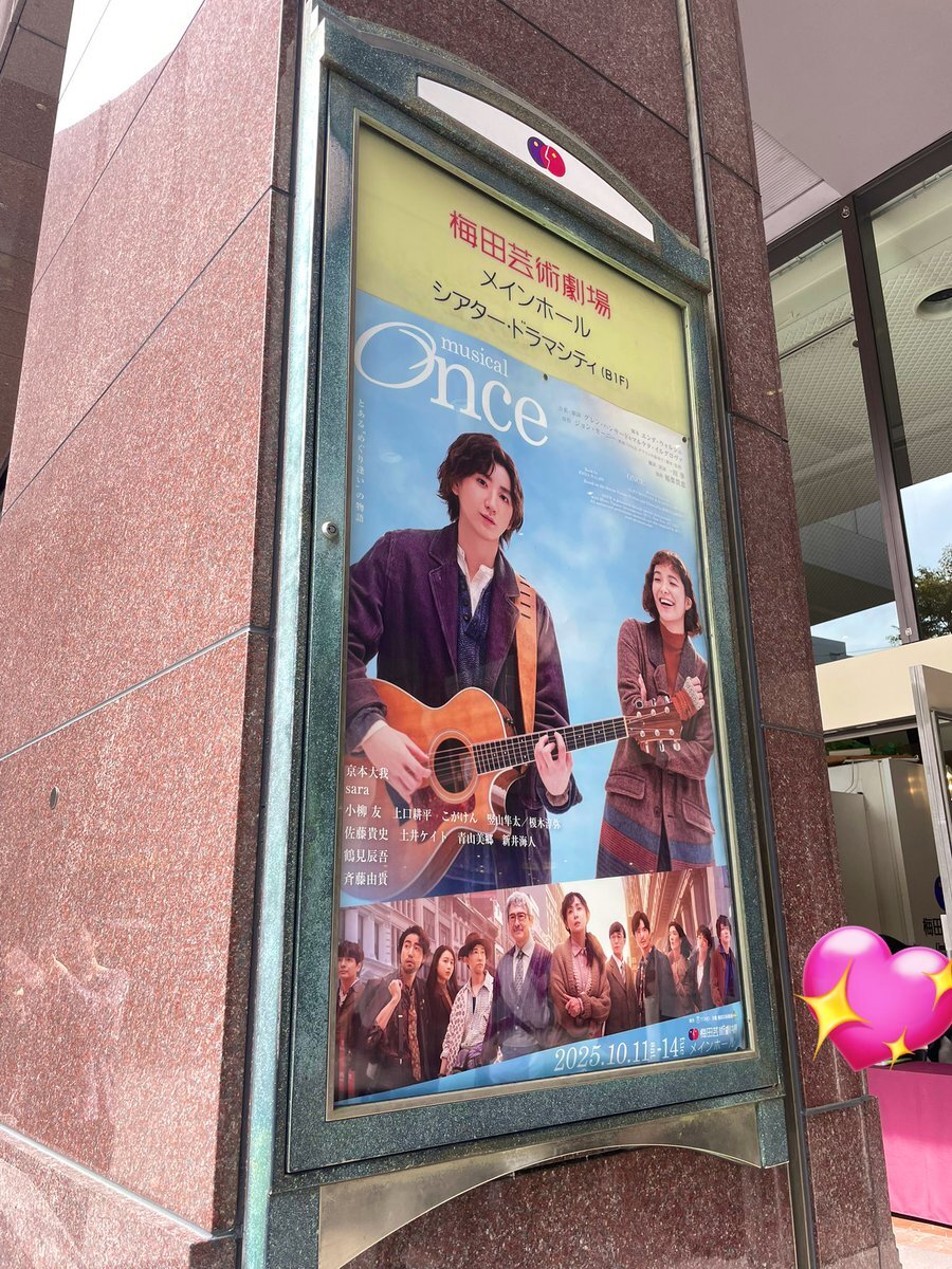 大阪初日Once初観劇 観ているうちにどんどん引き込まれていった素敵な舞台でした✨ 観終わったあとの余韻が凄くて結末をみんなで語り合いたかったです🤭🩷 大我くんの弾き語りと会場に響き渡る美しい歌声も✨素晴らしくて😭 幸せな時間ありがとうございました☺️ 🩷💙🖤ちゃんありがとう😊 #Once pic.x.com/LJH9EK810u
