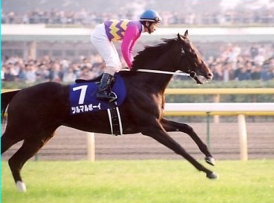ツルマルボーイ 主な勝ち鞍は安田記念 父ダンスインザダーク 母はツルマルガール 母父サッカーボーイ サッカーボーイは自身は1600から2000がベストだったけど 産駒のヒシミラクル、ナリタトップロード、ゴーゴーゼットは中長距離馬だった ダンスインザダークも中長距離に適性があったね〜