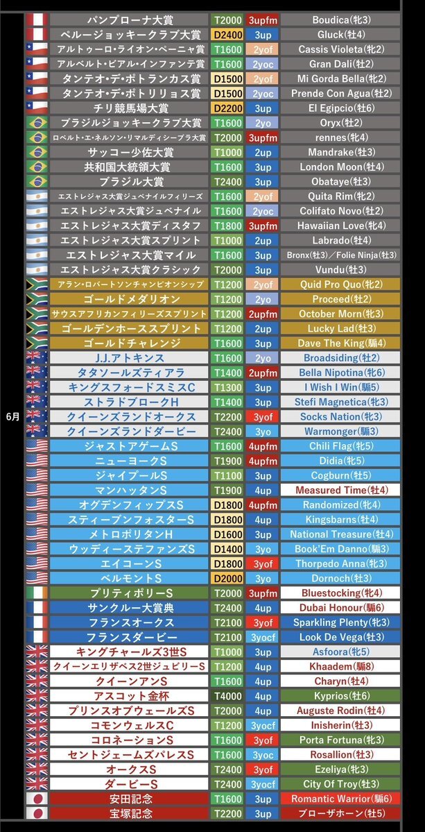 2024年6月の国際G1競走。英仏ダービーやアルゼンチンのBCことエストレジャス大賞など、各国でG1が目白押し。 数えると、この月はG1が55競走となり、11月と並びこの年で最もG1の多い月となった。 国内では、ロマンチックウォリアーの安田記念が印象的。 外国調教馬の安田記念制覇は実に18年ぶりだった。 pic.x.com/XAaLgGQvxm x.com/ukdhkRCXvQ9978…